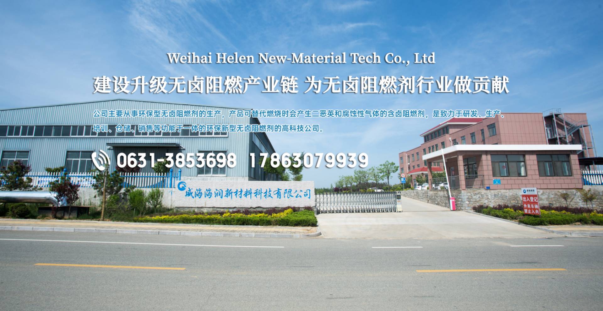 威海海潤新材料科技有限公司成立于2013年,是乳山市政府重點引進項目,占地100畝,總投資2.5億元,規劃建設用地面積58075平方米,新建生產車間共計 21320平方米,綜合樓 2595平方米。公司主要從事環保型無鹵阻燃劑的生產,產品可替代燃燒時會產生二惡英和腐蝕性氣體的含鹵阻燃劑,是致力于研發、生產、培訓、倉儲、銷售等功能于一體的環保新型無鹵阻燃劑的高科技公司。